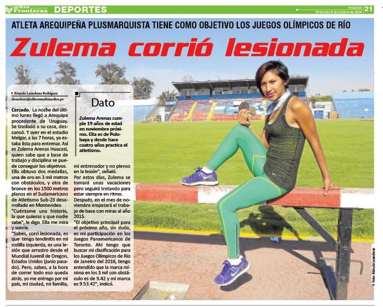 Atleta arequipeña plusmarquista tiene como objetivo los Juegos Olímpicos de Río